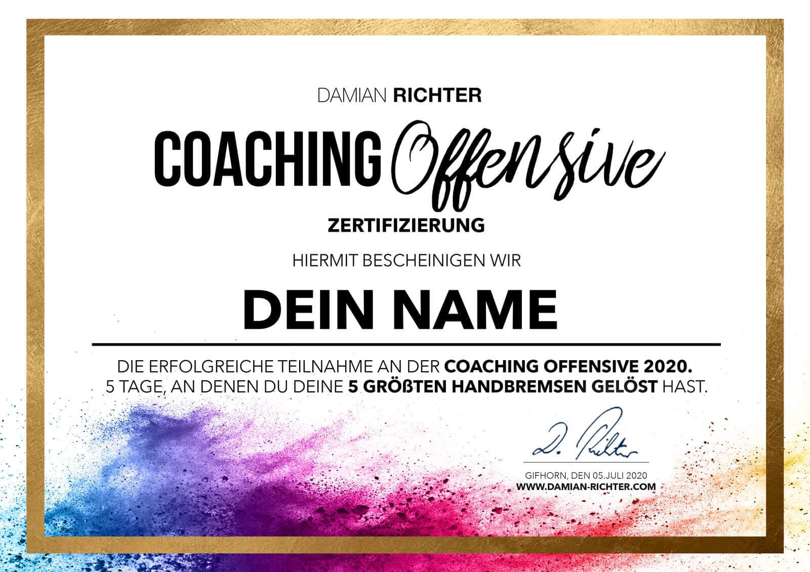 Sichere Dir Dein Teilnehmer-Zertifikat zur Coaching-Offensive