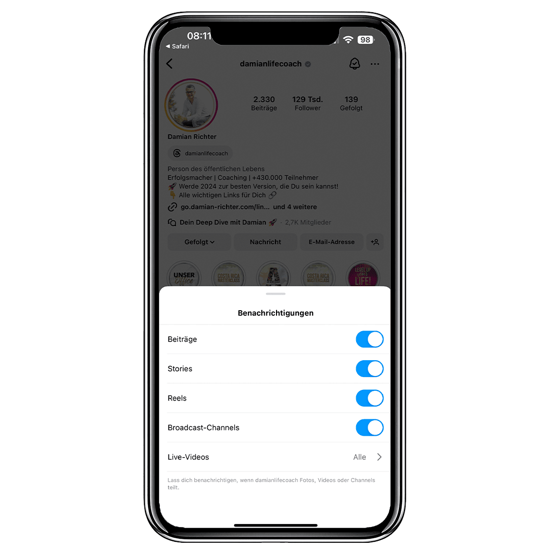 4. Die Benachrichtigungen auf Instagram aktivieren